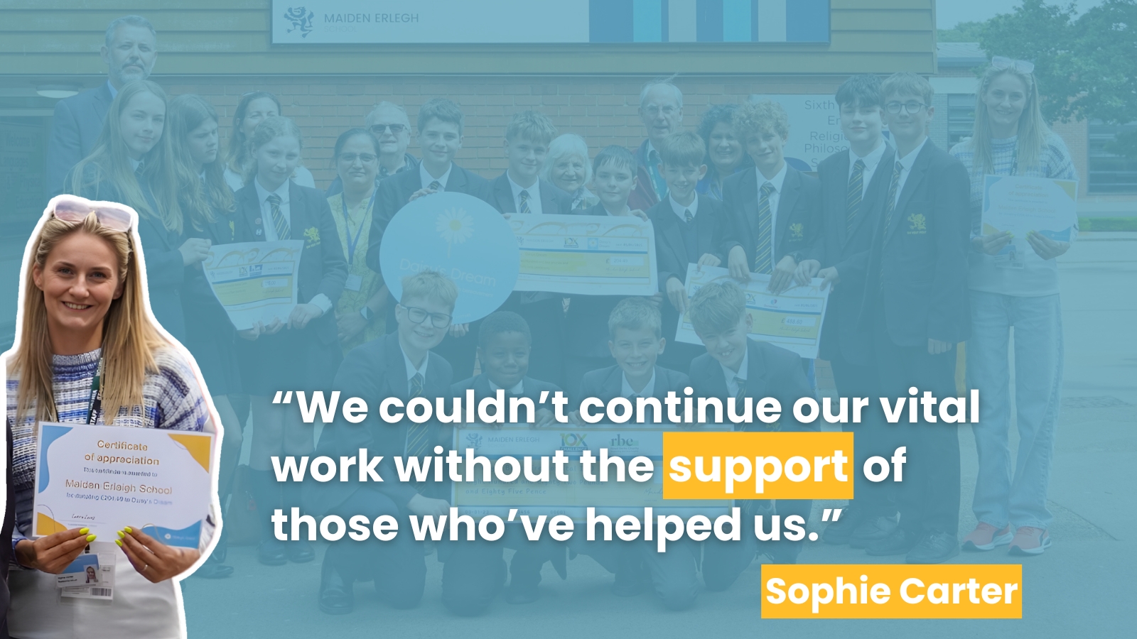 Next in the Community Champions series, we spoke to Sophie Carter, Fundraising Officer at Daisy’s Dream, a Berkshire-based charity that supports children and families affected by bereavement. Maiden Erlegh school are proud to support Sophie and her team in their latest community project.